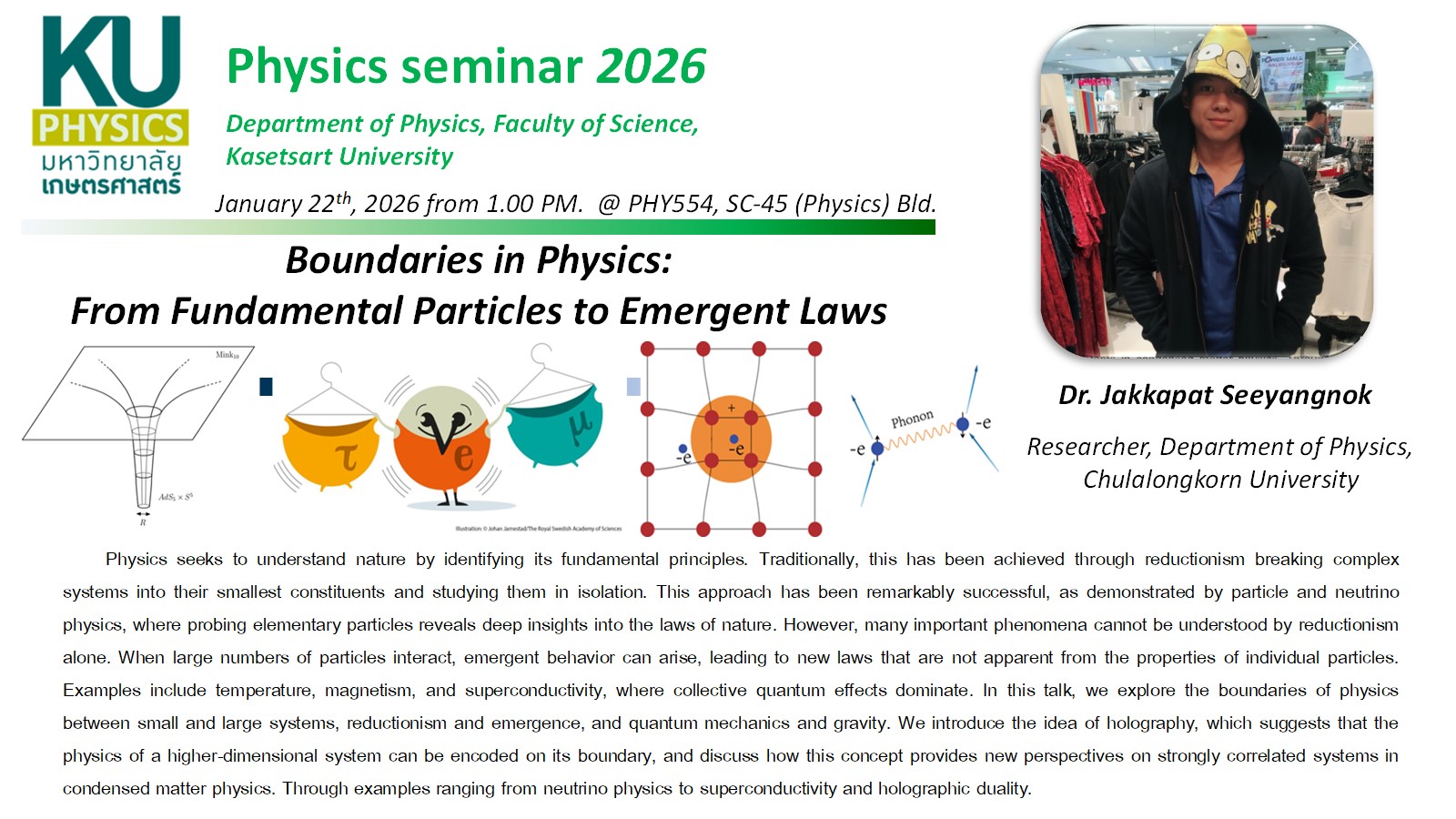 🎙 ดร.จักรภัทร สียางนอก (ตำแหน่ง นักวิจัย) จาก ภาควิชาฟิสิกส์ คณะวิทยาศาสตร์ จุฬาลงกรณ์มหาวิทยาลัย